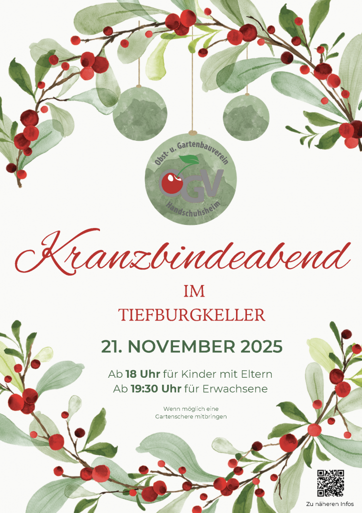 Bald ist es wieder soweit! Wir gehen mit großen Schritten der Adventszeit entgegen! Wir möchten Sie in diesem Jahr wieder zu unserem traditionellen Kranzbindeabend im Tiefburgkeller (Walter Genthner Keller) in Heidelberg Handschuhsheim einladen. Zubehör, wie verschiedenes Tannenreisig/Grün, Bindedraht, Stroh-Römer, Kerzen werden wir wieder zum Kauf anbieten.